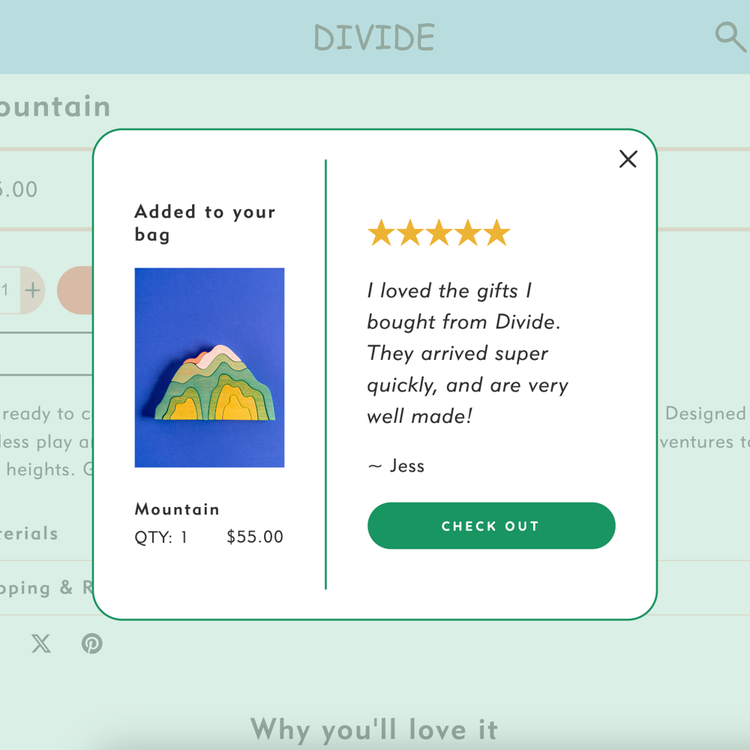 Are you trying to increase your average order value with upsells? Maybe you want to increase your conversion rate by reminding people why they should purchase from you, right after they add a product to cart. You can do it all with our cart notification feature.